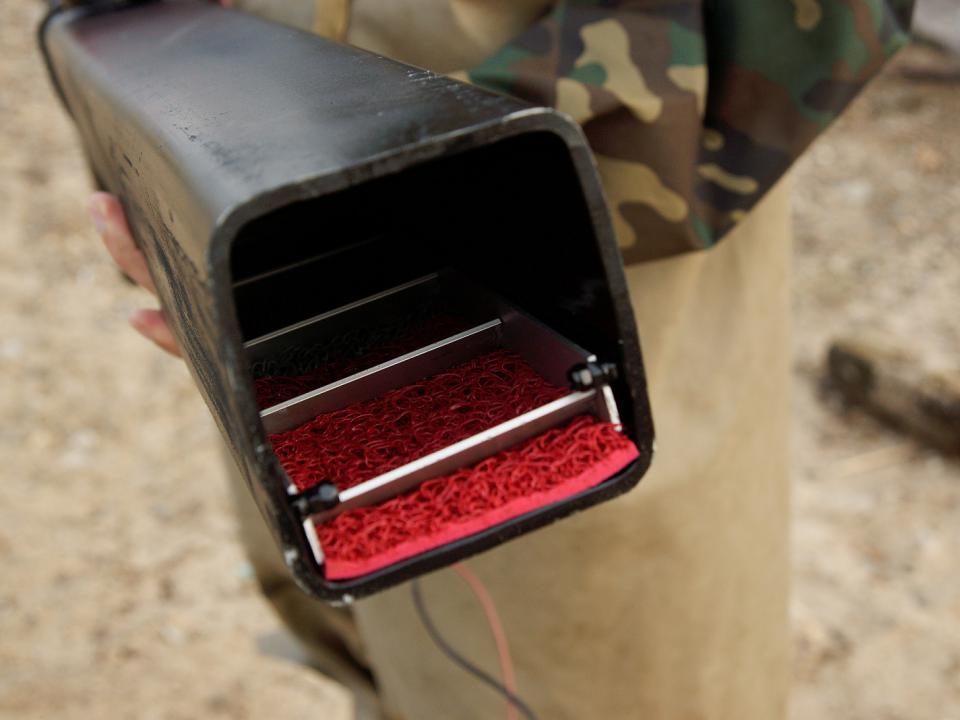драгой, удобной в транспортировке и в эксплуатации. Перемещать ее может даже один человек. Благодаря аккумулятору работа драги может быть непрерывной в течение шести часов. Когда помпа находится в воде, ее совершенно не слышно. Что касается ГСМ, в них необходимости не возникает, потому что драга работает с помощью солнечных панелей и мини-гидротурбин.