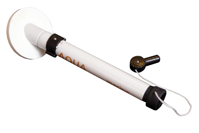 Магнитный стилус металлоискателя AQUAmarine закреплен шнуром к крышке батарейного отсека, во избежание случайной утери. Данная опция позволяет использовать магнитный стилус для извлечения из грунта небольших магнитных объектов трудно различимых визуально или тактильно. Пользователь погружает стилус в выкопанный грунт и контактным методом рассеивает его стилусом, как только стилус приблизится к магнитному, он сразу его примагнитит. Это позволит сэкономить время на просеивании грунта.